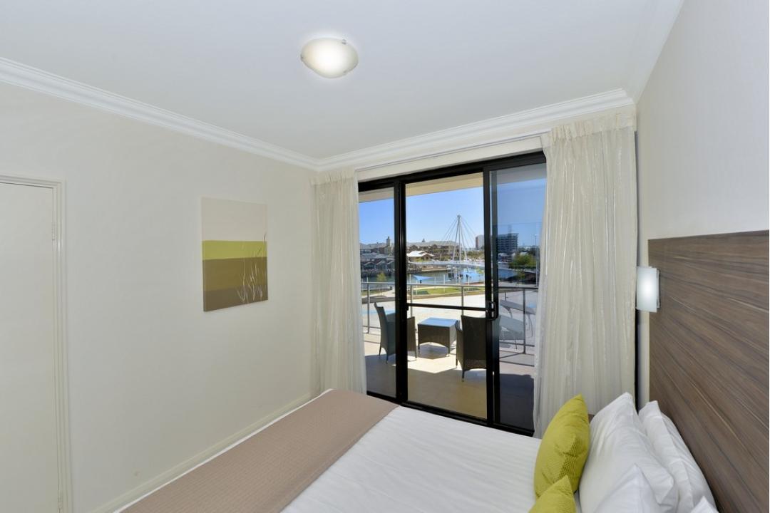Please note that the marina view apartments are located along the length of the building, overlooking the marina and small beach area, from levels one and two.